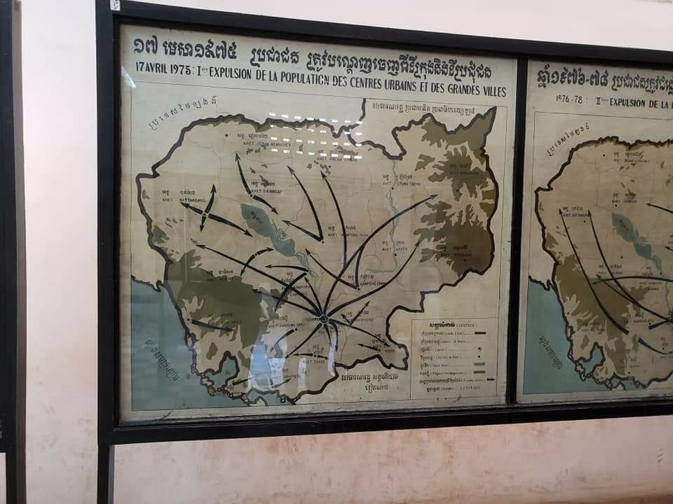 When the Khmer Rouge came to power, the cities were emptied and everyone was moved to the country side. The map shows how the majority of the population were moved out from the largest cities and into the countryside.